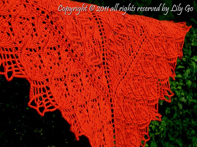 And Narnia and Poison Ivy are also triangular shawls and are worked from the top down. All of Lily's shawl patterns includes charts, written instructions, stitch count totals for every row and tips how to make a larger shawl and the yardage needed.